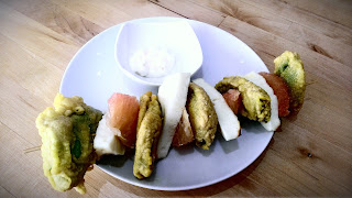 1) Slice the courgette in half, scoop out the seeds with a spoon drizzle it with olive oil and bake in the oven for 30 minutes at 200 degrees.